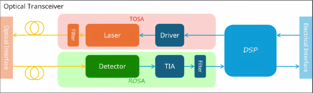 On the transmit path, it converts high-speed electrical signals from switches or network interface cards into modulated optical signals suitable for fiber transmission. Conversely, on the receive path, it reconverts incoming optical signals back into electrical format for processing by host devices.