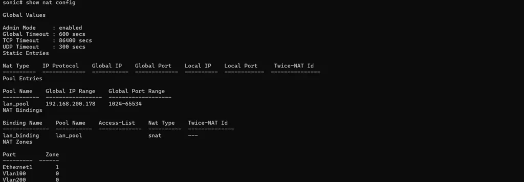 sonic# show nat config