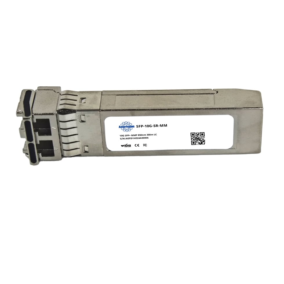 The SFP+ 10GBASE-SR optical transceiver module applies in 10-Gigabit Ethernet connectivity. It provides transmission distances up to 300 meters via multi-mode fibers. It operates at an 850nm wavelength and is equipped with the VCSEL laser technology and a PIN photodetector. This module offers reliable, energy-efficient performance for data center and enterprise networking applications.