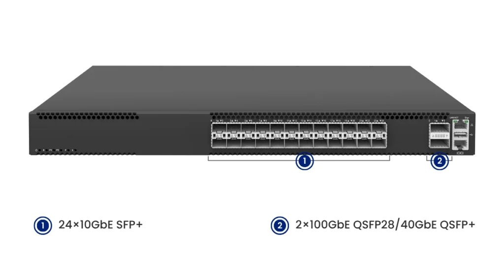 Boasting 24×10GbE and 2×100GbE ports, the device supports interface splitting via breakout cables, which helps enhance the efficiency of network resource usage and accommodate diverse application scenarios.