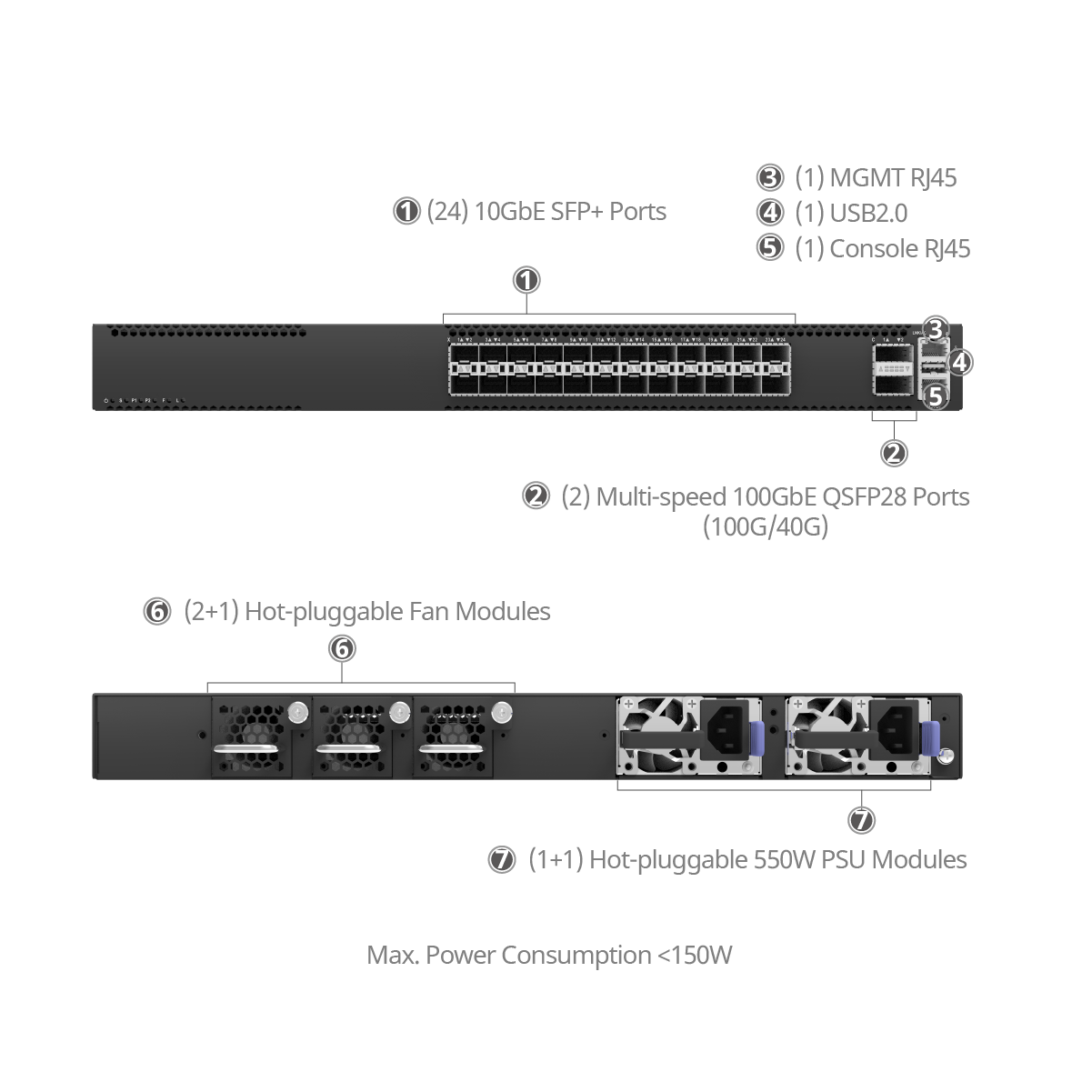 (2) 100GbE QSFP28 (downgradable to 2×40GbE)
