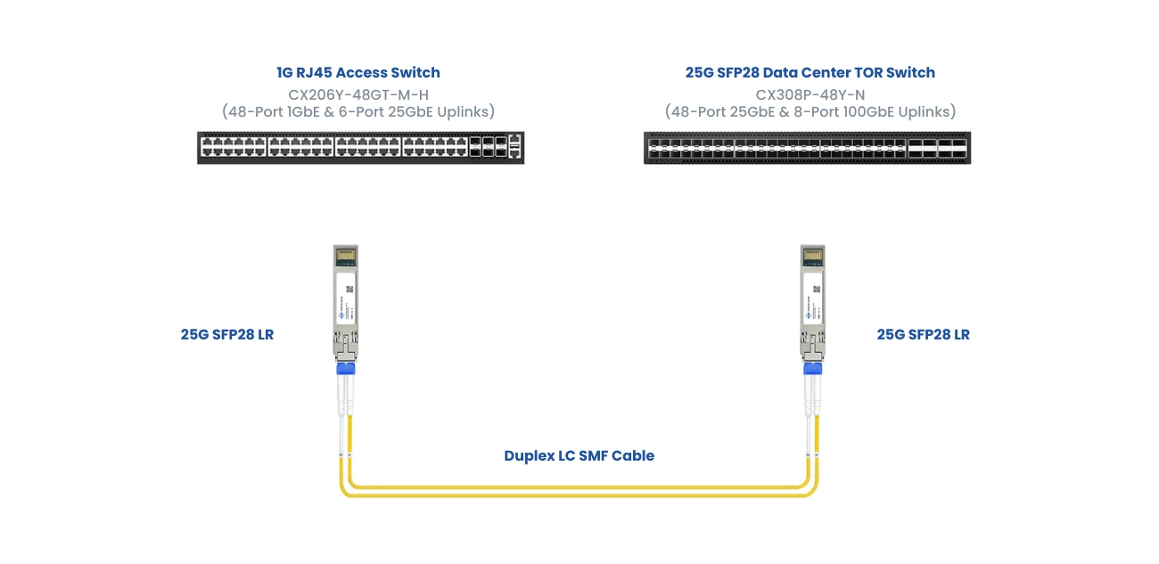 Fully compatible with SFF-8472, SFF-802, IEEE 802.3 standards and IEEE 802.3 standards, the 25G SFP28 LR transceiver ensures wide connectivity between routers, switches, and network equipment from different suppliers. Available in both commercial (0- 70 °C)as well as industrial (-40-85 °C)temperatures, it can adapt to various deployment settings.