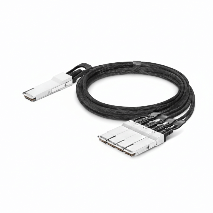 One switch port. Four server connections. The AEC-400G-QDD-4*QSFP56 breaks a single 400G QSFP56-DD port into four independent 100G QSFP56 links — active copper, up to 8 meters, built for AI inference fabrics and high-density data center breakout.