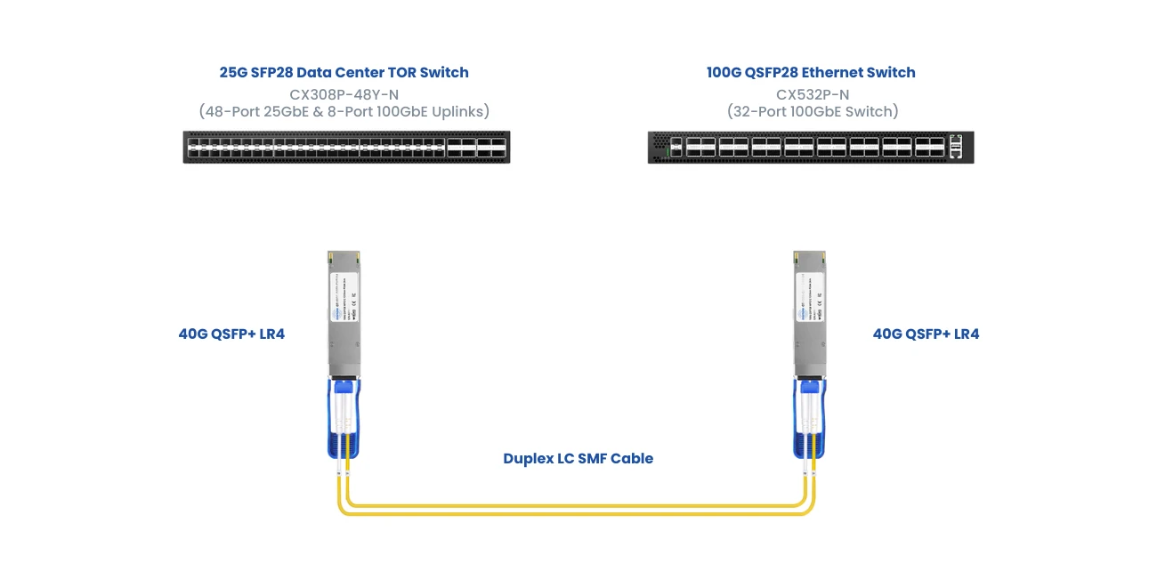 - Up to 10 km reach over single-mode fiber (1310 nm)