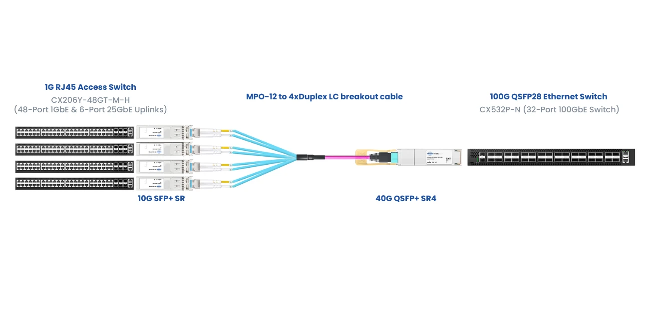 - Up to 100 m reach on OM3, 150 m on OM4 multimode fiber