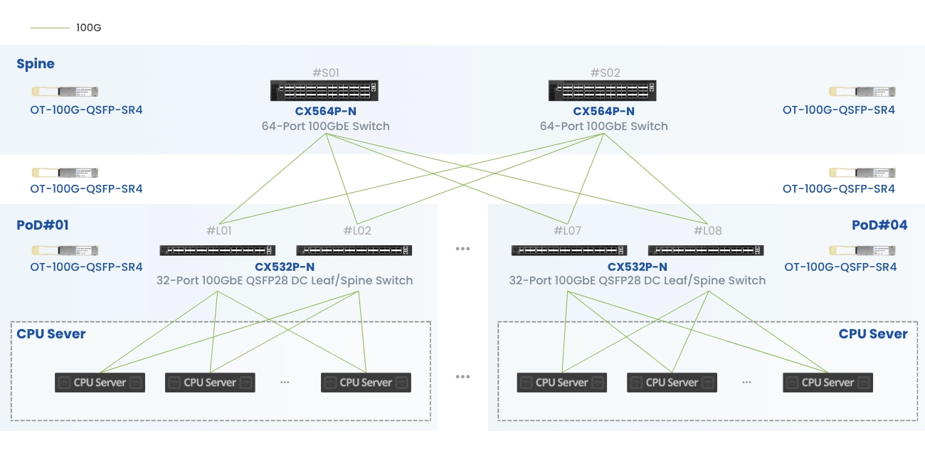- Low Latency: Designed for high-speed communication, 100G switches minimize data transmission delays, crucial for latency-sensitive applications.