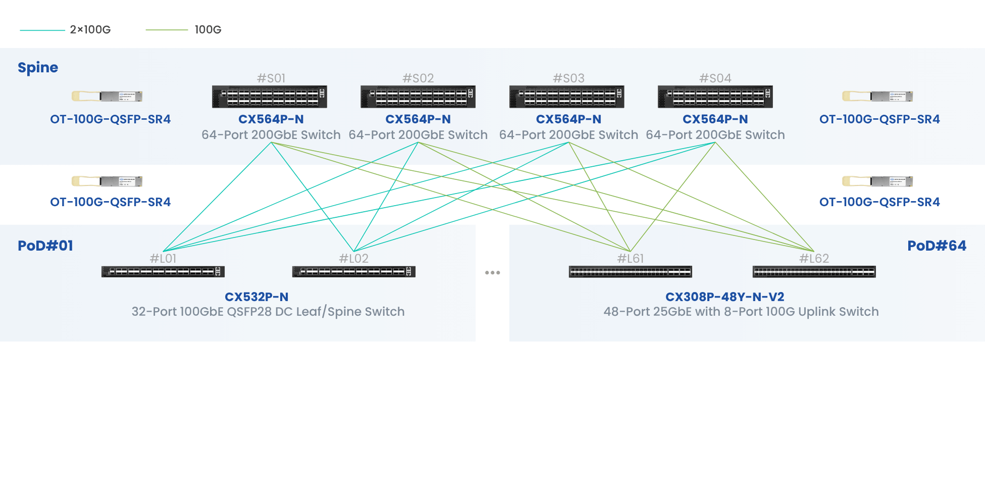 64×100GbE QSFP28 Low Latency Leaf/Spine Switch